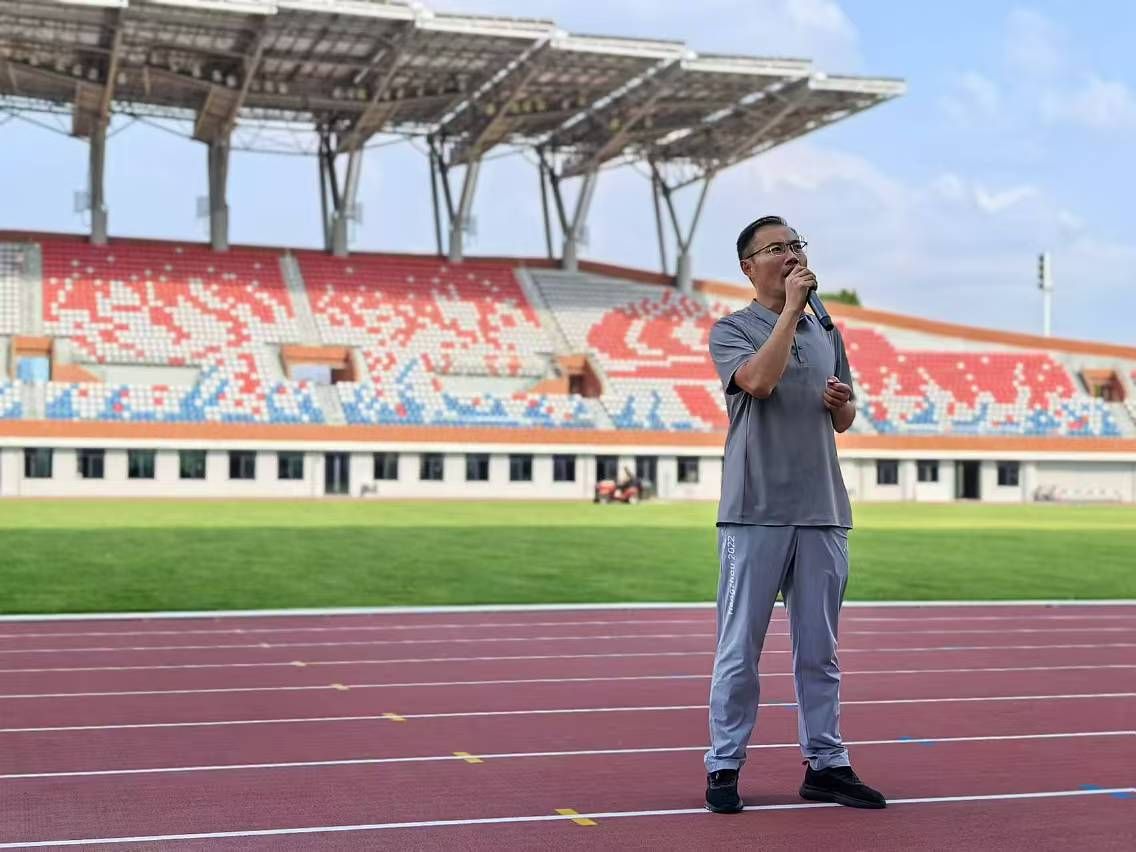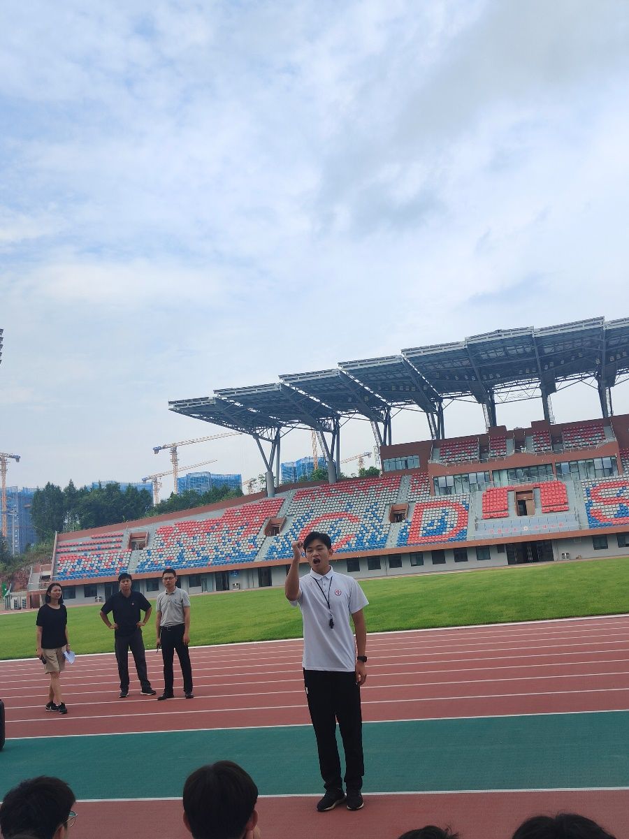 队伍陆续走进主田径场,田径教研室主任江平老师首先介绍新校区主田径场赛事承载能力和功能、学校田径项目历史和特色,以及学校田径队训练及荣誉。作为allwincity万象城官方网站成立以来历史最久、积淀最深的教研室之一,田径教研室始终坚持allwincity万象城官方网站“以体为本”的教学特色,发挥着“运动之母”项目功能。近几年,田径教研室及代表队在国家级、省级赛事上取得累累硕果,培养出十余名健将水平的学生运动员,和大量高水平学生运动员。江平老师希望新同学们保持对田径项目的热情,在入校后坚持训练,不断突破极限。