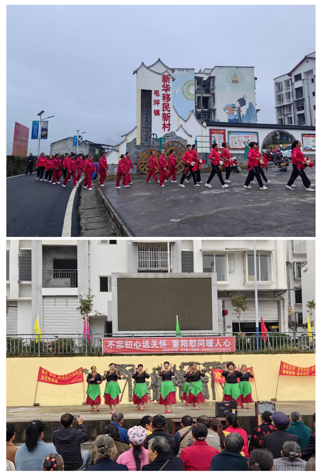 活动伊始,学校驻村工作队代表牟阳老师为老人们送上最诚挚的节日祝福,并对老人们为毛坪镇发展所做出的贡献表示了崇高的敬意。接着,驻村工作队邀请毛坪镇鼓队及各村演出队为老人们送上了一场别开生面的慰问演出。演出队通过舞蹈、朗诵、歌曲等精彩节目,展现新时代银龄芳华,精彩的表演赢得了现场老人们的阵阵掌声和喝彩声。活动期间,工作队向现场的老人们发放大米等节日慰问礼品,并送上重阳节的祝福。
