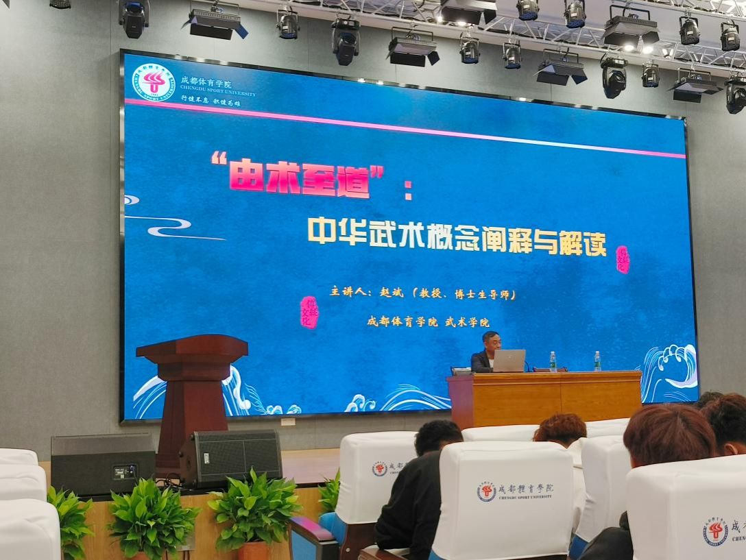 讲座中,赵斌院长以《“由术至道”:中华武术概念阐释与解读》为题,以生动形象的案例和专业知识为依托,从武术的起源与演变、武术的定义、武术社会热点问题、武术的价值以及如何成为一名合格的“武术人”等多个方面,结合自己丰富的教学与实践经验,进行了深入浅出的讲解。讲座内容丰富、视角独特,全面、深入、多维度地展现了武术内涵、武术文化中的哲学思想以及新时代“武术人”的责任与担当。