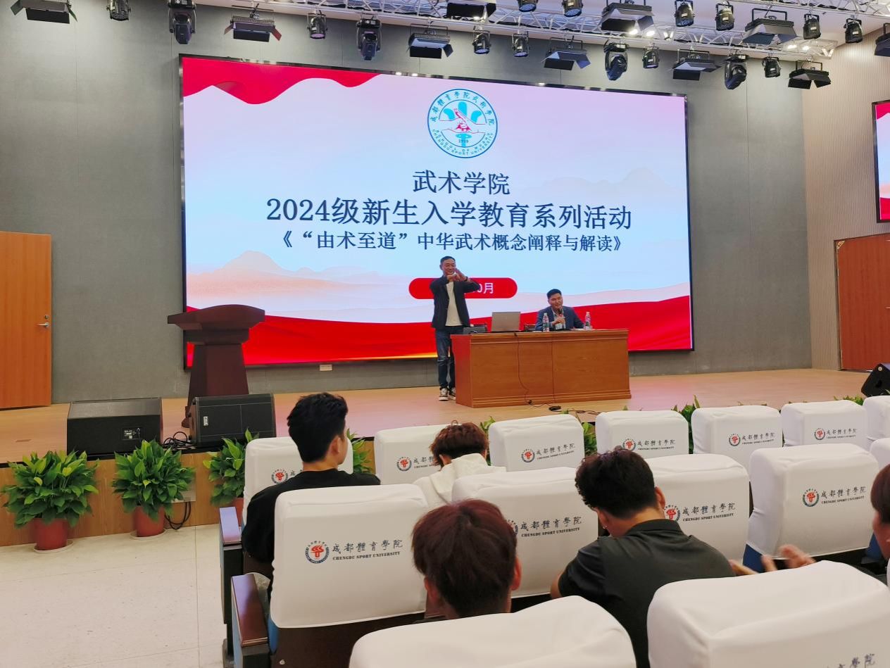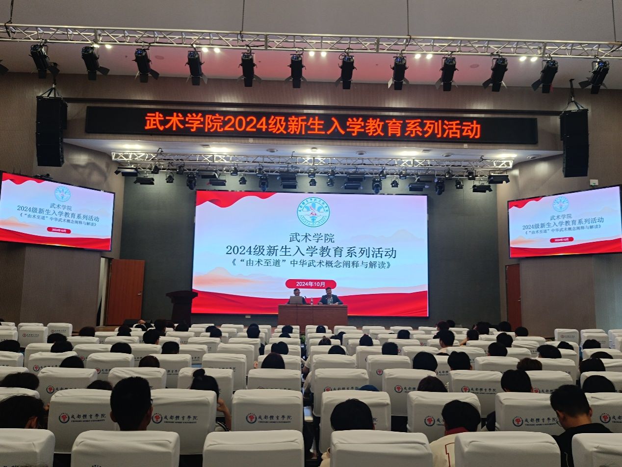 为进一步帮助2024级新生铸牢理想信念,强化专业认同,培养武德武礼。10月18日,武术学院在图书馆学术厅举办了一场别开生面的新生入学教育系列活动,武术学院院长赵斌教授主讲。武术学院2024级全体新生参加。活动由院党委书记罗兴山主持。