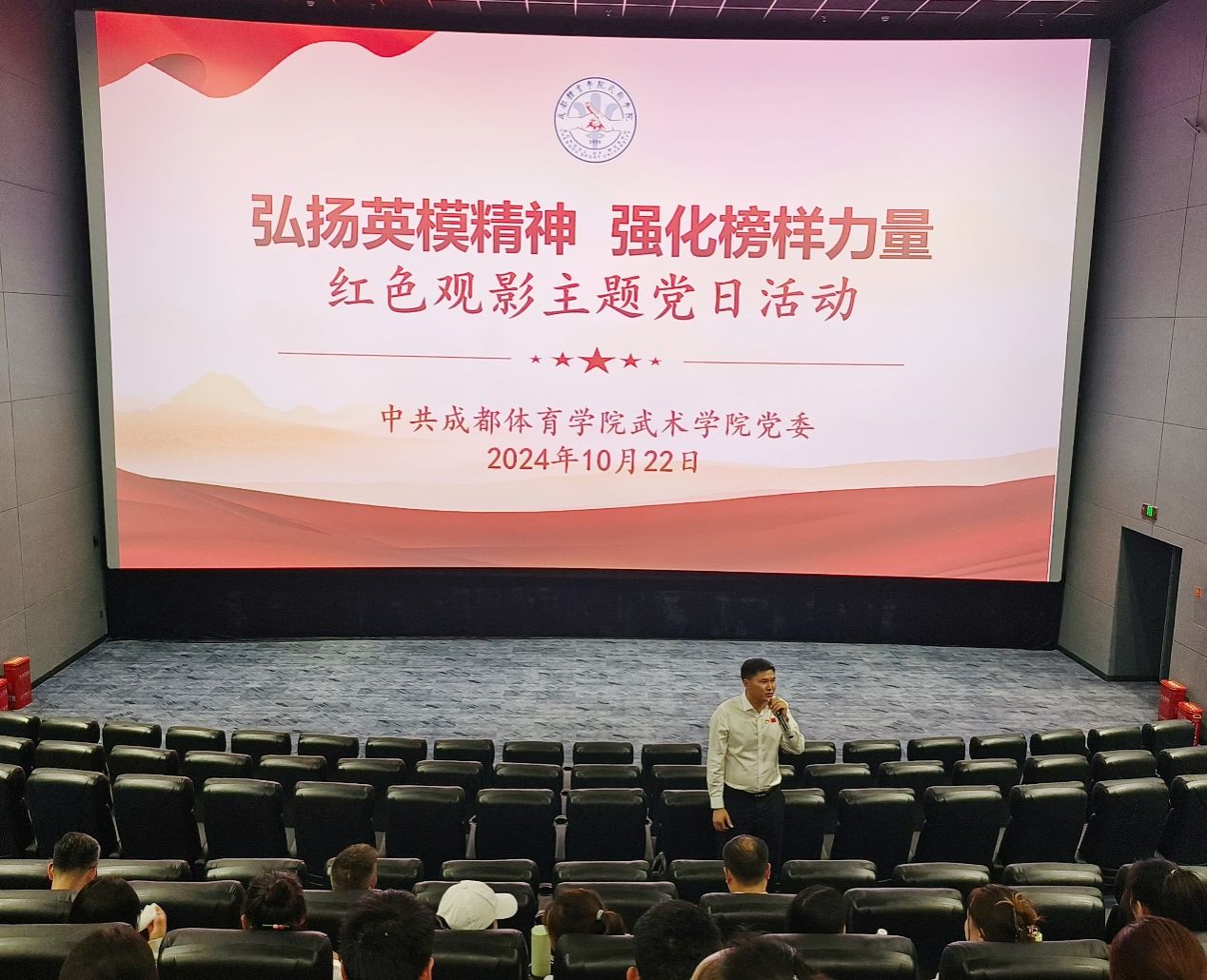 为庆祝中华人民共和国成立75周年,大力弘扬英模精神,强化榜样教育力量,10月22日傍晚,武术学院党委三个党支部联合开展“弘扬英模精神,强化榜样力量”红色观影主题党日活动暨“青年党员说”主题分享交流,武术学院师生党员、入党积极分子集中观看红色电影《志愿军:存亡之战》。同时,武术学院党委还开展了“青年党员说”主题分享交流。