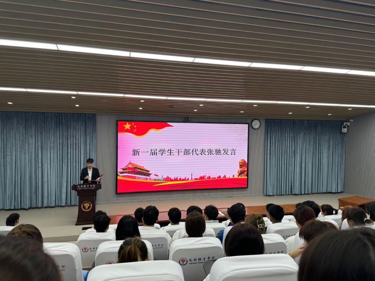紧接着,新任学生会主席张驰发表了就职演讲,他强调学生会应成为学院与师生间的坚实桥梁,致力于提升学院学生管理工作的整体水平,全心全意为学生服务。