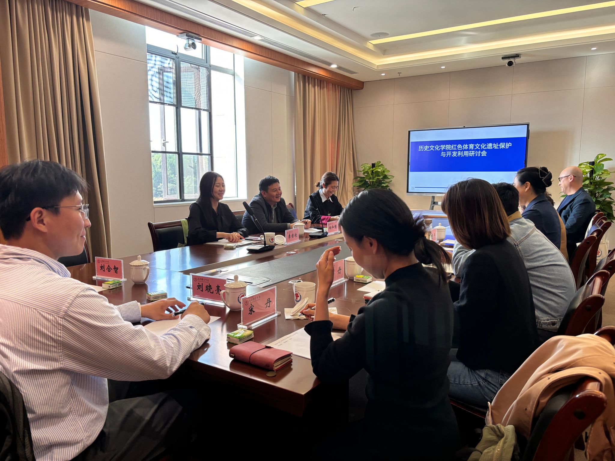 近日,四川博物院党委书记向和频一行莅临万象城,参加“历史文化学院红色体育文化遗址保护与开发利用研讨会”,并就“校馆战略合作”进行了座谈。历史文化学院党委副书记张玲玲、副院长宋秀平,以及文博学教研室、体育文物科技实验室教师和文博专硕学生代表参加会议。