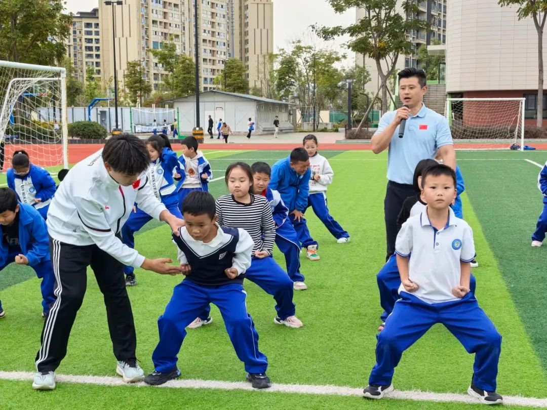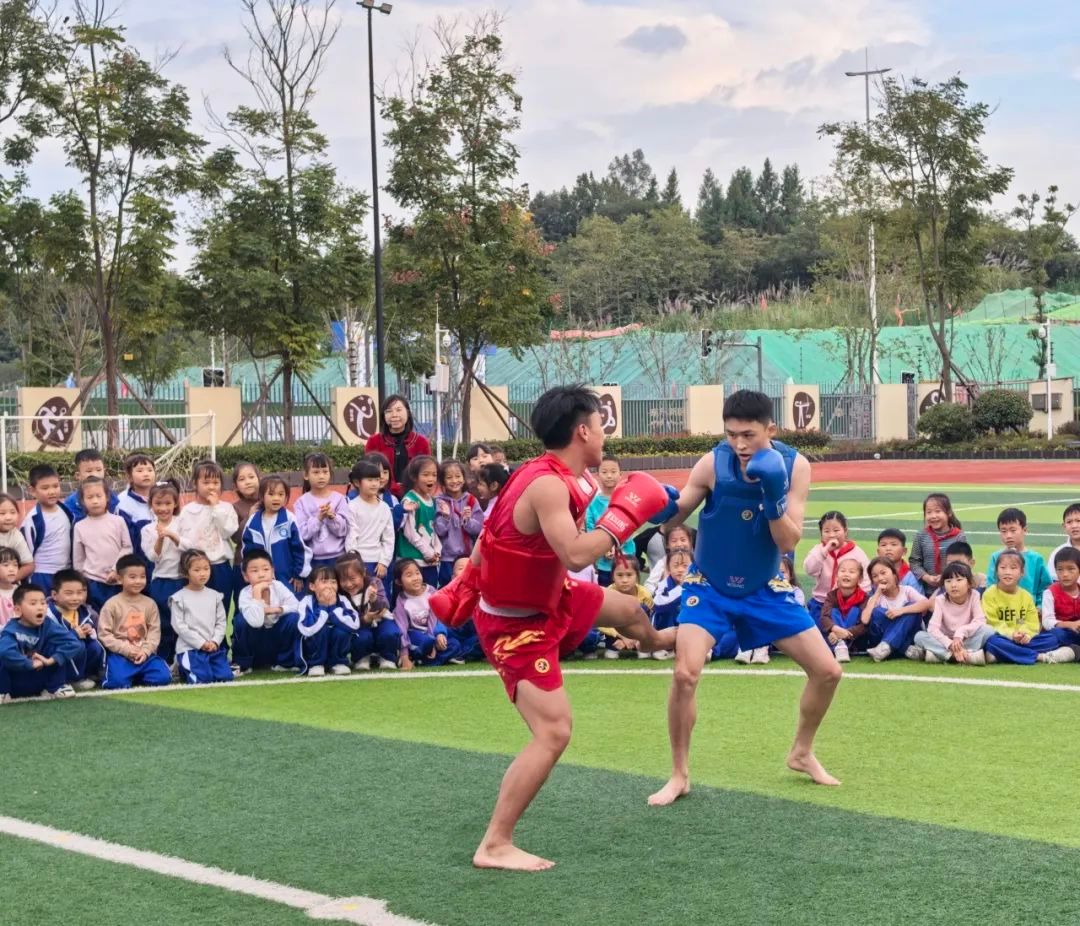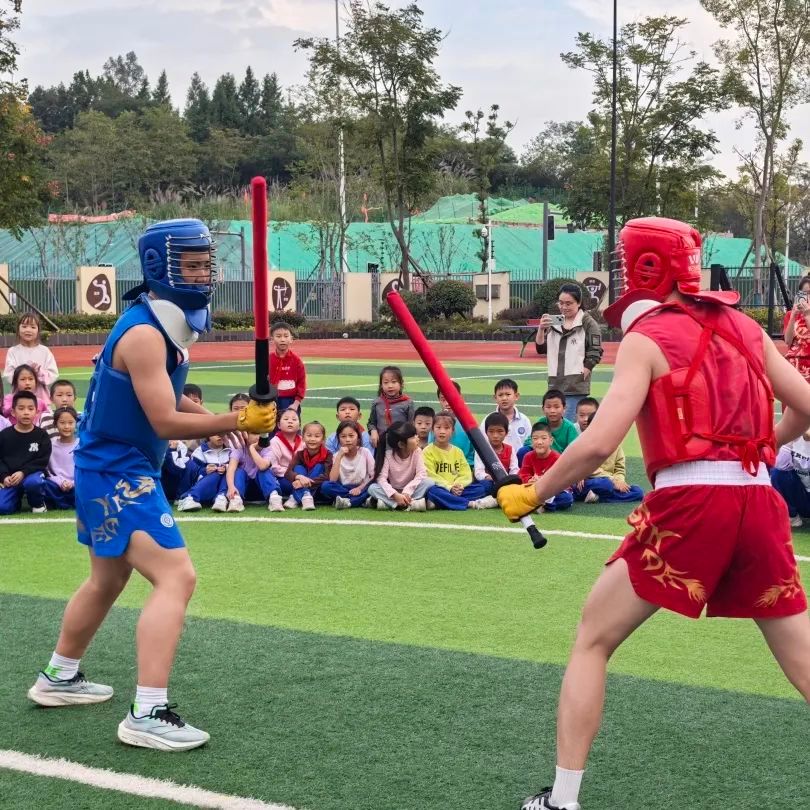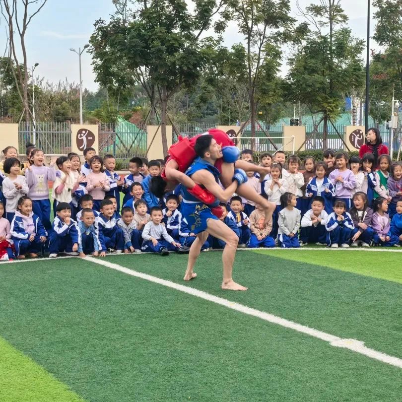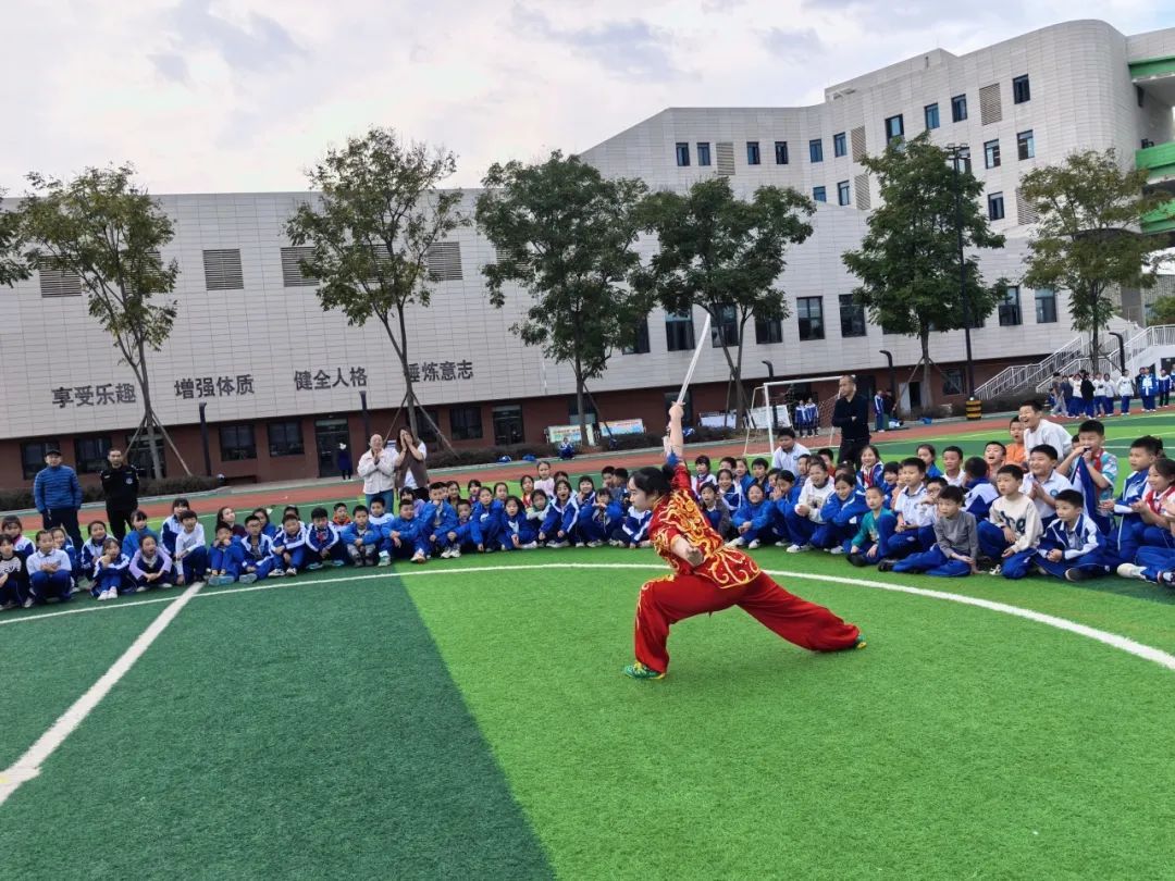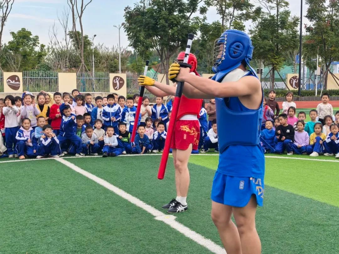 为大力弘扬优秀传统文化,促进武术运动普及、传承尚武精神,推动中小学教育事业高质量发展,11月4日,武术学院携手成都东部新区新民学校,成功举办了一场别开生面的武术文化交流活动。学校书记兼校长郭志华、副书记李兴军,武术学院搏击教研室副主任,兼成都东部新区新民学校体育校长吴宝元,以及1至5年级的师生们积极参与活动。