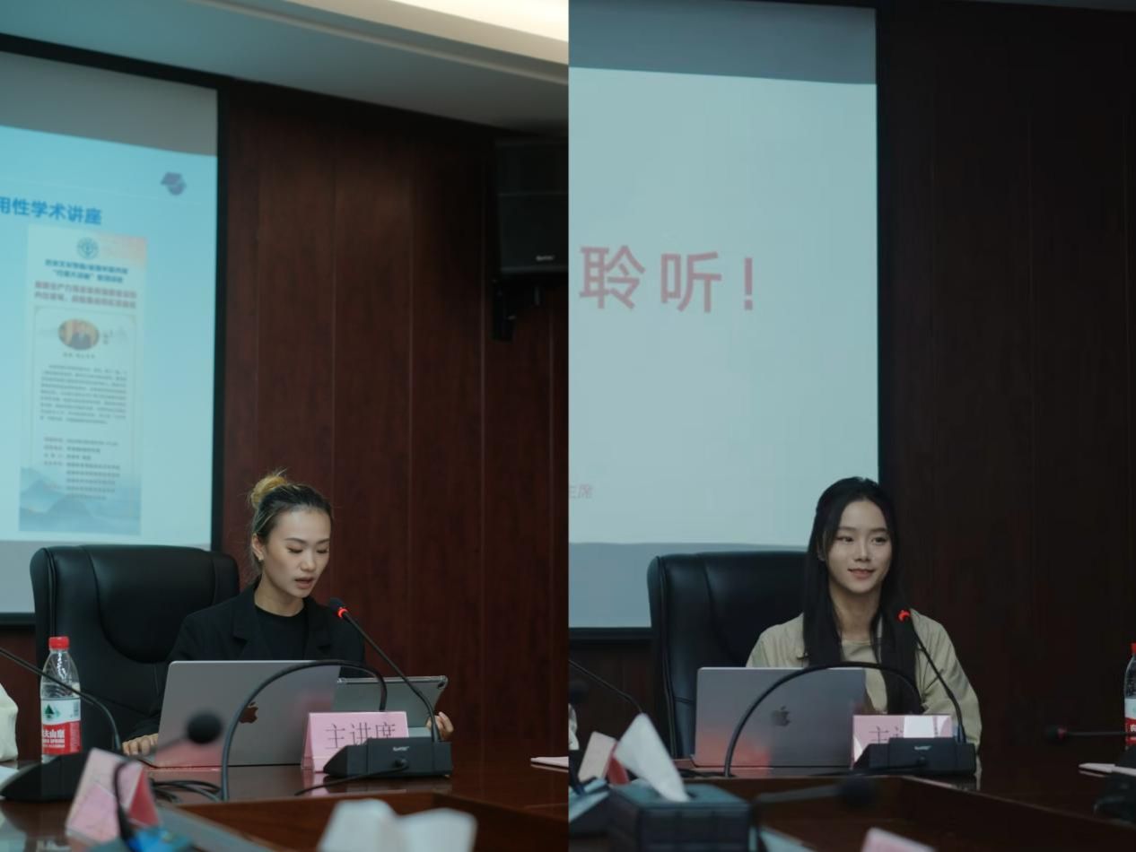 在学生会(研究生会)工作经验交流座谈会上,艺术学院研究生会主席黄能秋、研究生会办公室主任李玥分别就研究生会组织内部管理与团队建设和学术活动与就业引导工作作了主题为“创艺无界 研思共鸣”和“学术、就业 共促成长”的交流分享。