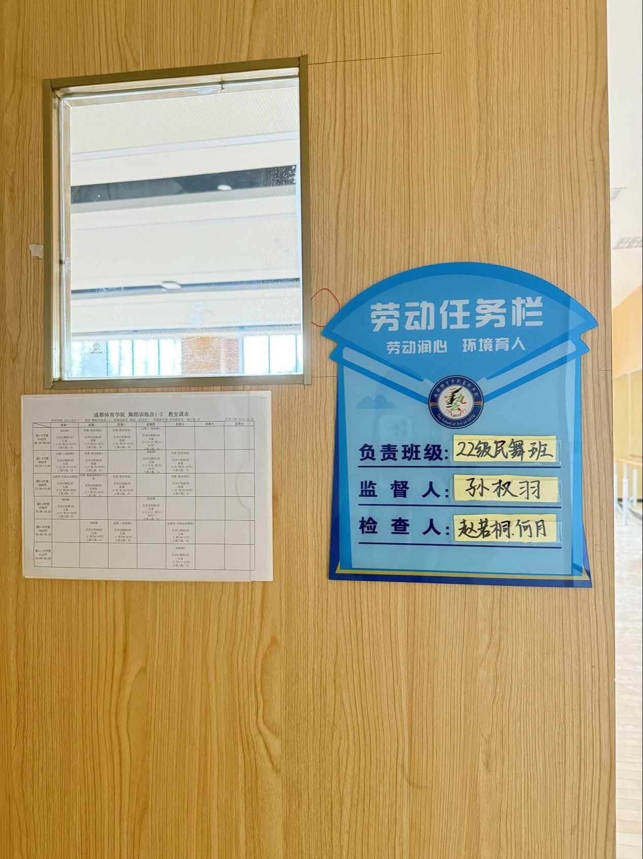 针对德艺大楼地广保洁人员少的问题,学院制定劳动教育方案,将每一间舞蹈房责任到班级,由班主任牵头,定期组织对舞蹈房进行大扫除,保持良好的课堂环境。