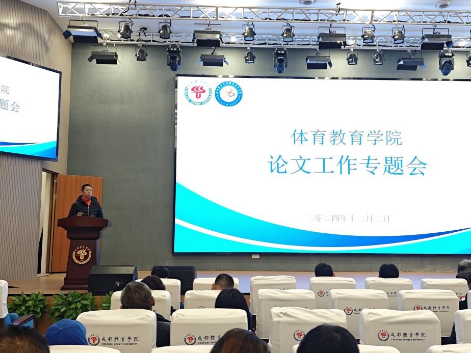 为进一步做好毕业论文质量管理工作,严把毕业出口关,提升人才培养质量,12月2日,体育教育学院在图书馆学术报告厅召开论文工作专题会,学院全体教师参加。会议由学院副院长吴小彬主持。