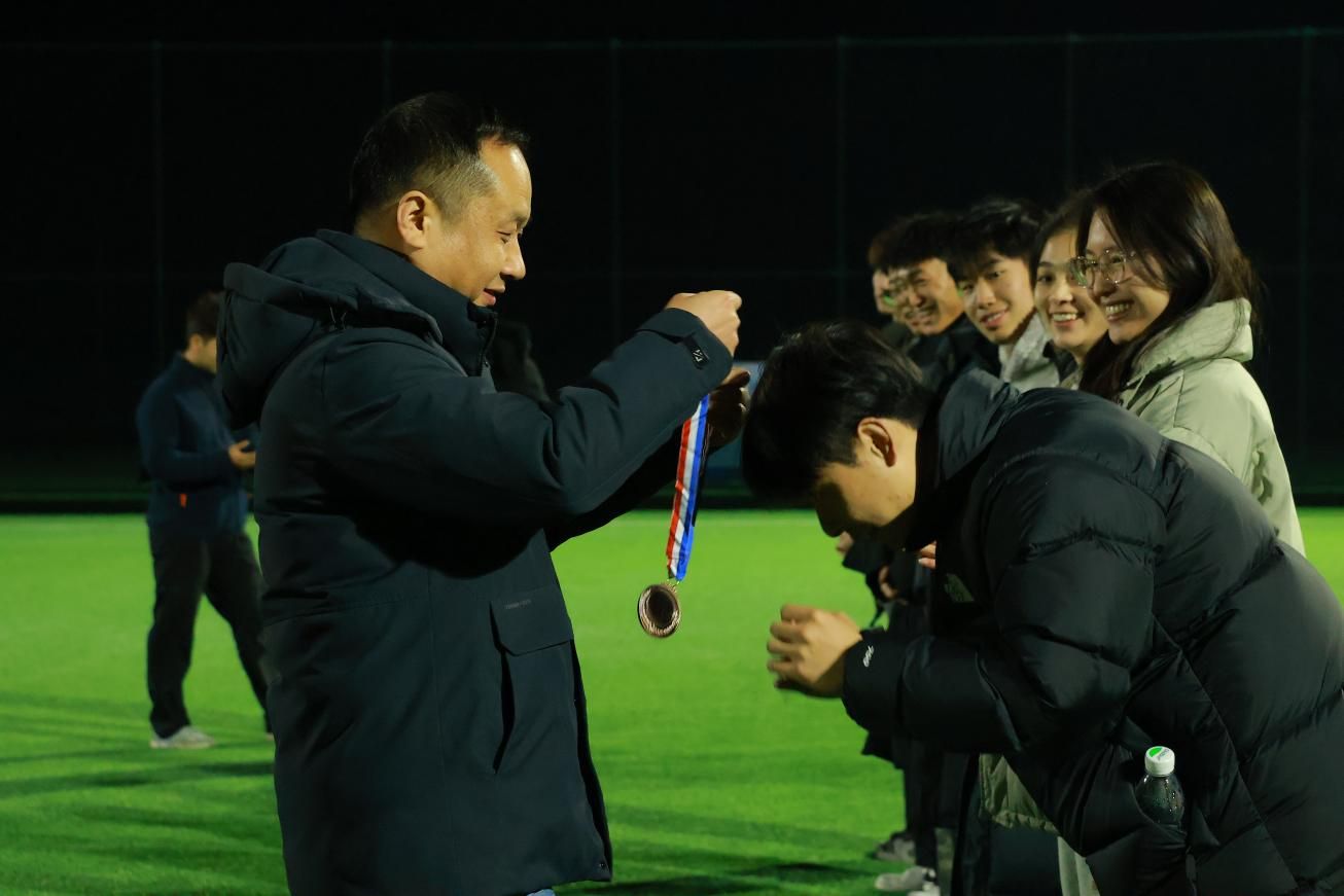 12月11日,“武”动青春,“足”梦起航武术学院2024年足球友谊赛决赛暨赛事闭幕式隆重举行。出席本次闭幕式的有武术学院院长赵斌、党委书记罗兴山、武术学院副院长李传国、本科生管理办公室主任李阳、团总支书记刘洪源、各班班主任,以及各参赛队伍的代表和热情洋溢的观众。闭幕式由刘洪源老师主持。