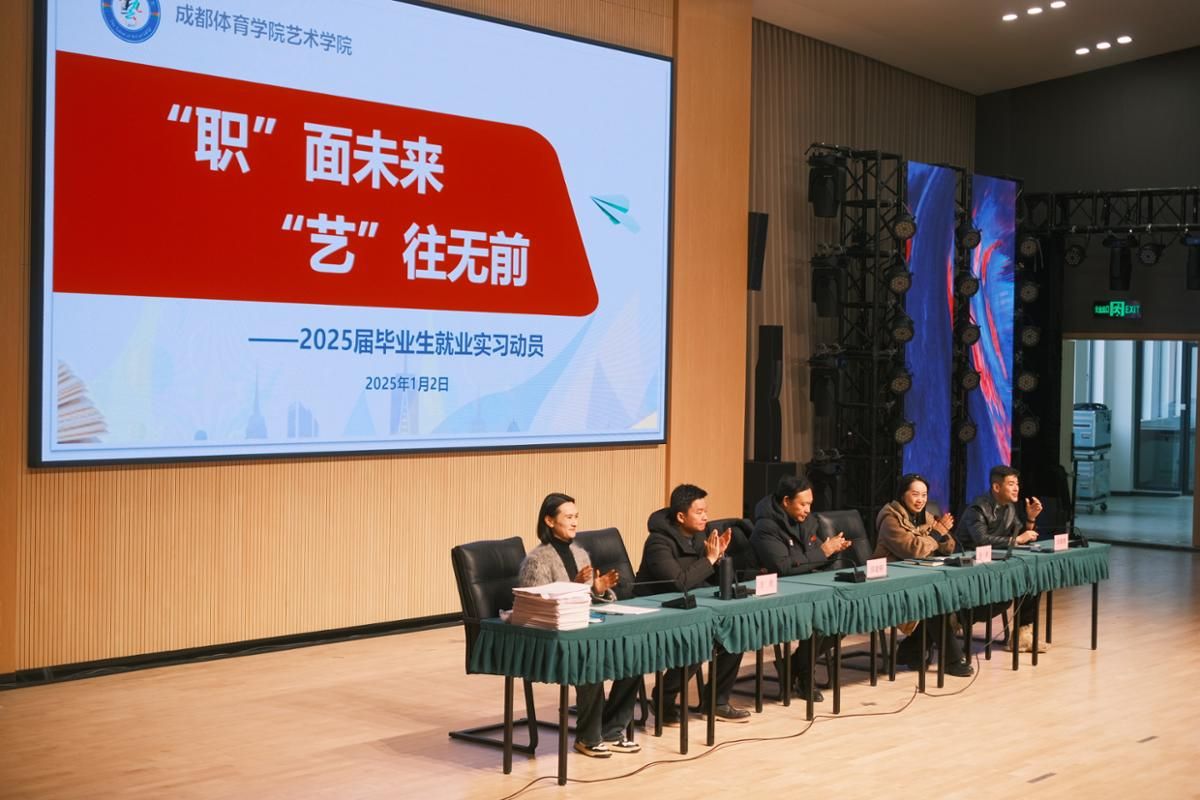 为引导毕业生树立正确的就业观,提高就业实习质量,凝心聚力做好毕业生就业实习工作,1月2日中午13:00艺术学院在德艺大楼音乐厅召开了2025届毕业生就业实习动员大会,特邀学校就业指导中心主任邹佩儒到场指导,学院领导班子、辅导员及2025届全体毕业生参会,会议由本科生管理办公室主任王玥主持。