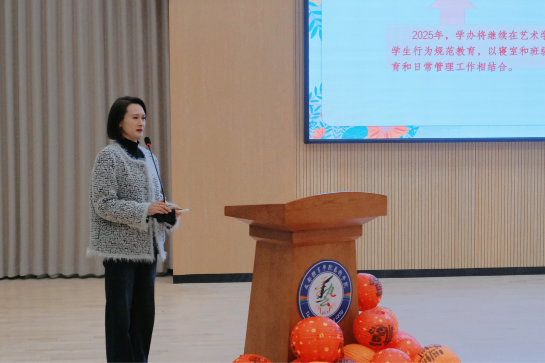 会上,学院党委办公室、学院办公室,本科生管理办公室,研究生管理办公室,中国舞教研室,运动舞蹈教研室,国际标准舞教研室,声乐教研室,器乐教研室,艺术创作与理论教研室分别就2024年度工作亮点和工作成效进行了梳理总结,就工作中存在的不足和改进思路进行了汇报,并对2025年的工作进行规划。