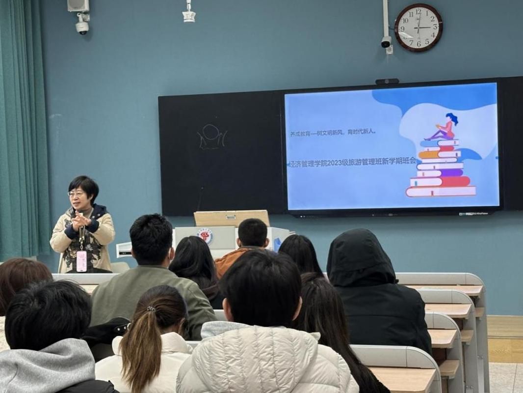 保卫处副处长何兴伟参加2024级旅游管理1班主题班会