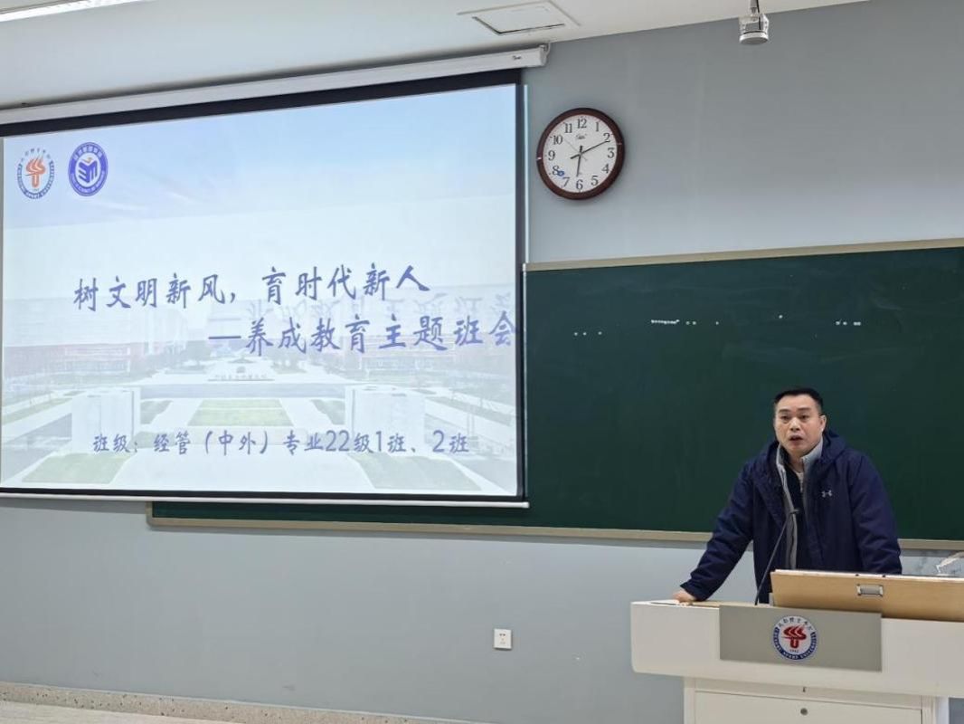 为全面落实学校关于强化学生行为规范与文明习惯养成教育,树立良好校风学风,加快推进文明校园建设的要求,开学第二周,经济管理学院各班级陆续开展了“树文明新风,育时代新人”养成教育主题班会。联系班级处级领导干部参加班会,会议由各班班主任组织,全体学生参加。