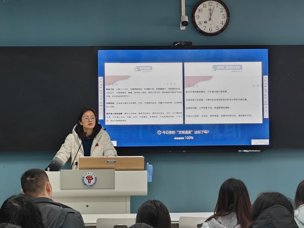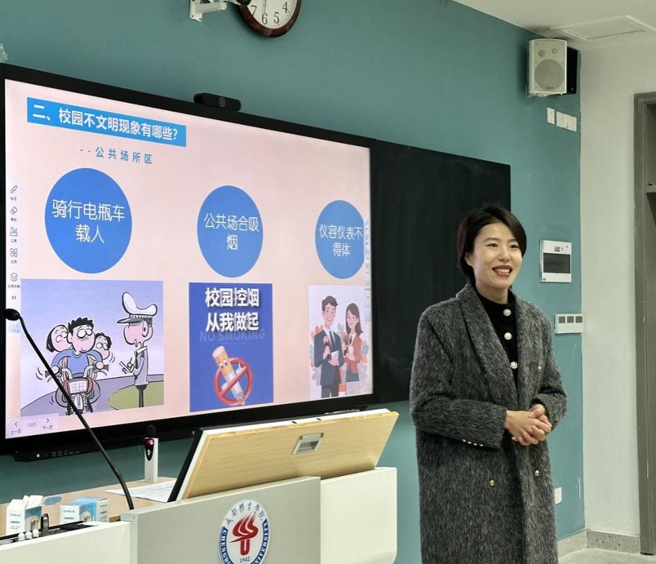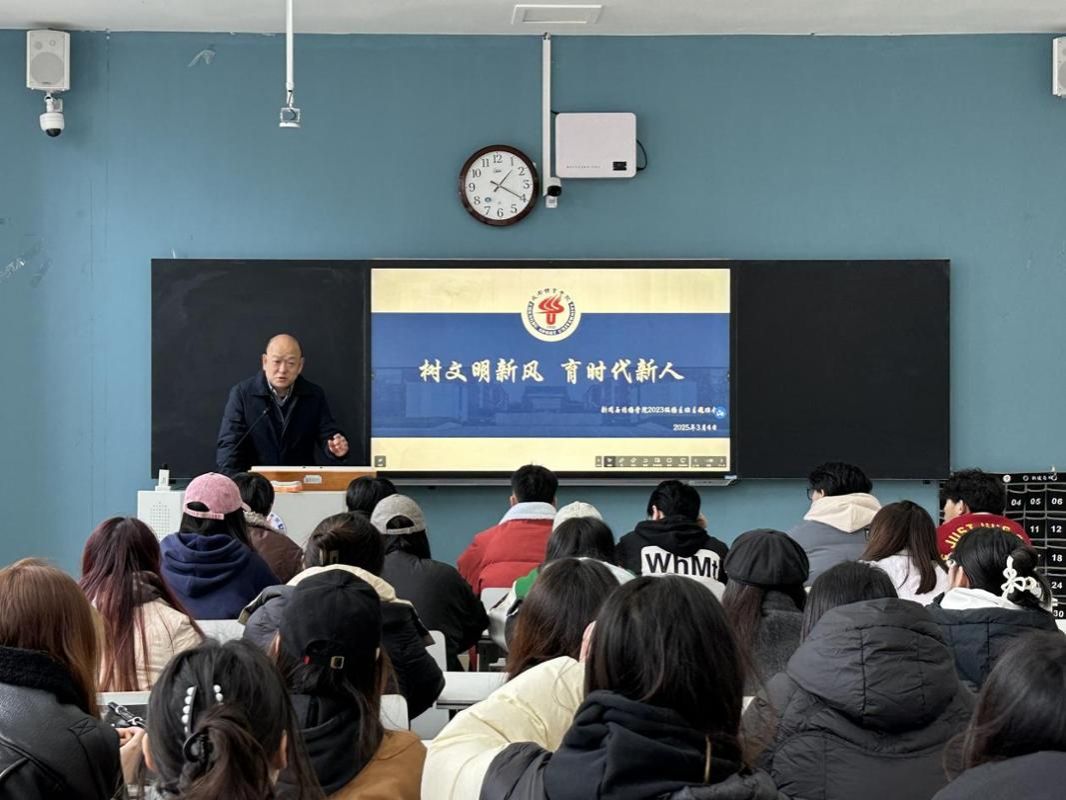班会期间,各班邀请了联系班级的处级领导全程参与活动。各处级干部围绕“文明校园建设的重要意义”“校园不文明现象”“个人在文明建设中的责任”三大核心问题展开讲授,重点聚焦“骑行电动车不载人、公共场所禁烟、仪容仪表规范”三项校园文明建设重点内容,通过案例分析、互动讨论等形式引导学生深入思考并践行文明准则。各班级会后及时向学院学管办提交了班会总结材料,确保教育成果落地落实。