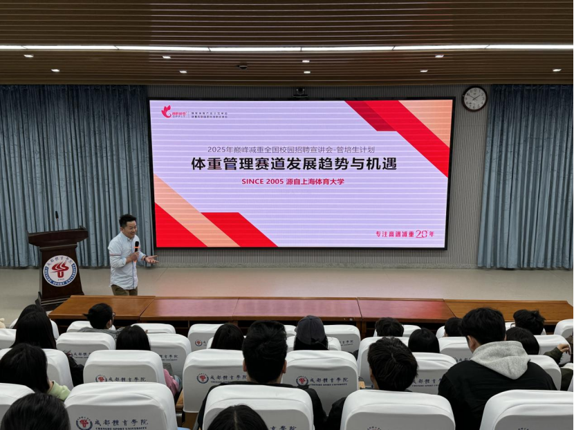 交流会后,于行健楼A100举行运动医学与健康学院2025届就业招聘宣讲会。此次宣讲会旨在深化校企合作、拓宽就业渠道,助力毕业生高质量就业。运动医学与健康学院党委副书记刘余出席会议并致辞,学院2025届全体毕业生及全体辅导员参会。冯磊以“体重管理赛道发展趋势与机遇”为题展开宣讲。他结合企业发展历程,系统分析了运动人体科学、体重管理、主动健康等领域的行业趋势与就业前景,并重点介绍了集团2025年校园招聘岗位需求及人才培养计划。毕业生围绕职业能力要求、岗位晋升路径、企业实习实践等问题踊跃提问,冯磊结合行业案例一一解答,现场气氛热烈。会后,学生与企业代表进一步交流并投递简历,多名毕业生与企业达成初步双选意向。