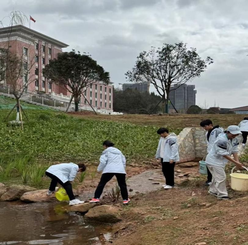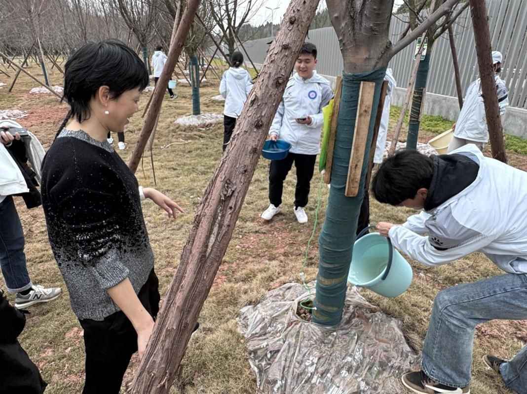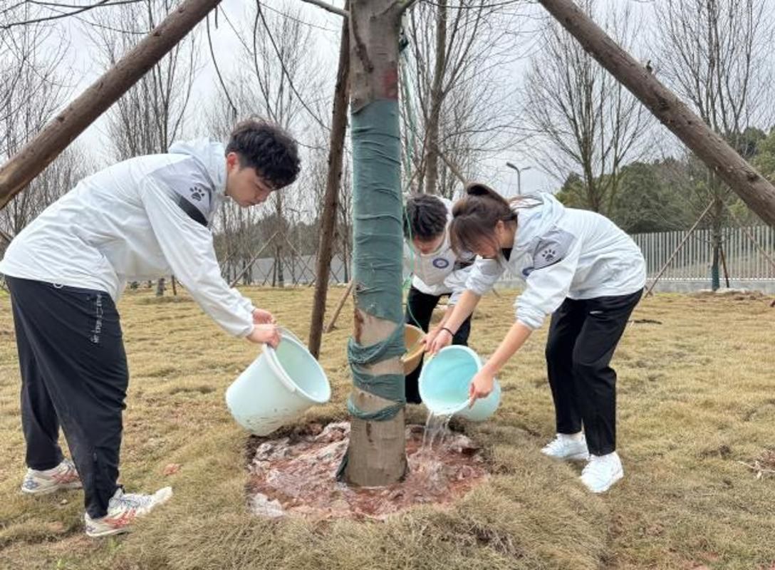 活动现场,师生们分工协作,运水、灌溉,切实保证浇灌质量,共同呵护绿植成长。参与学生感慨道:“今天的活动使他们对成体有了更加浓厚的归属感与责任感。”